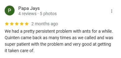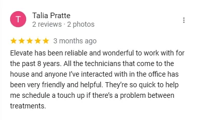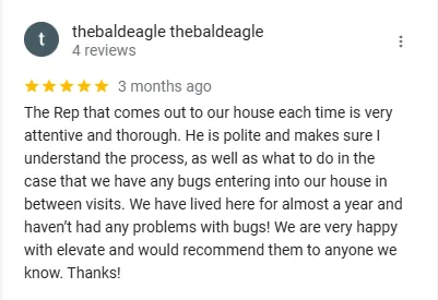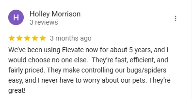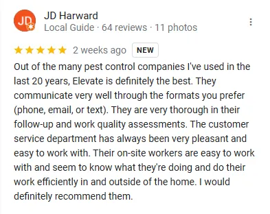 By submitting, you authorize Elevate Pest Control to text and call the number you provided with offers & other information, possibly using automated means. Message/data rates apply. Consent is not a condition of purchase.